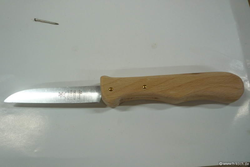 www.windmuehlenmesser.de. Also ein hochwertiges Messer mit ehemals scharfer Klinge mit Dünnschliff und schönem Holzgriff.
