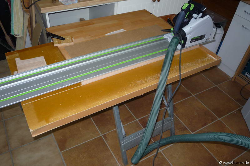 Die Breite mußte ich mit der Tauchsäge und meiner Zuschnittvorrichtung auf Maß bringen.