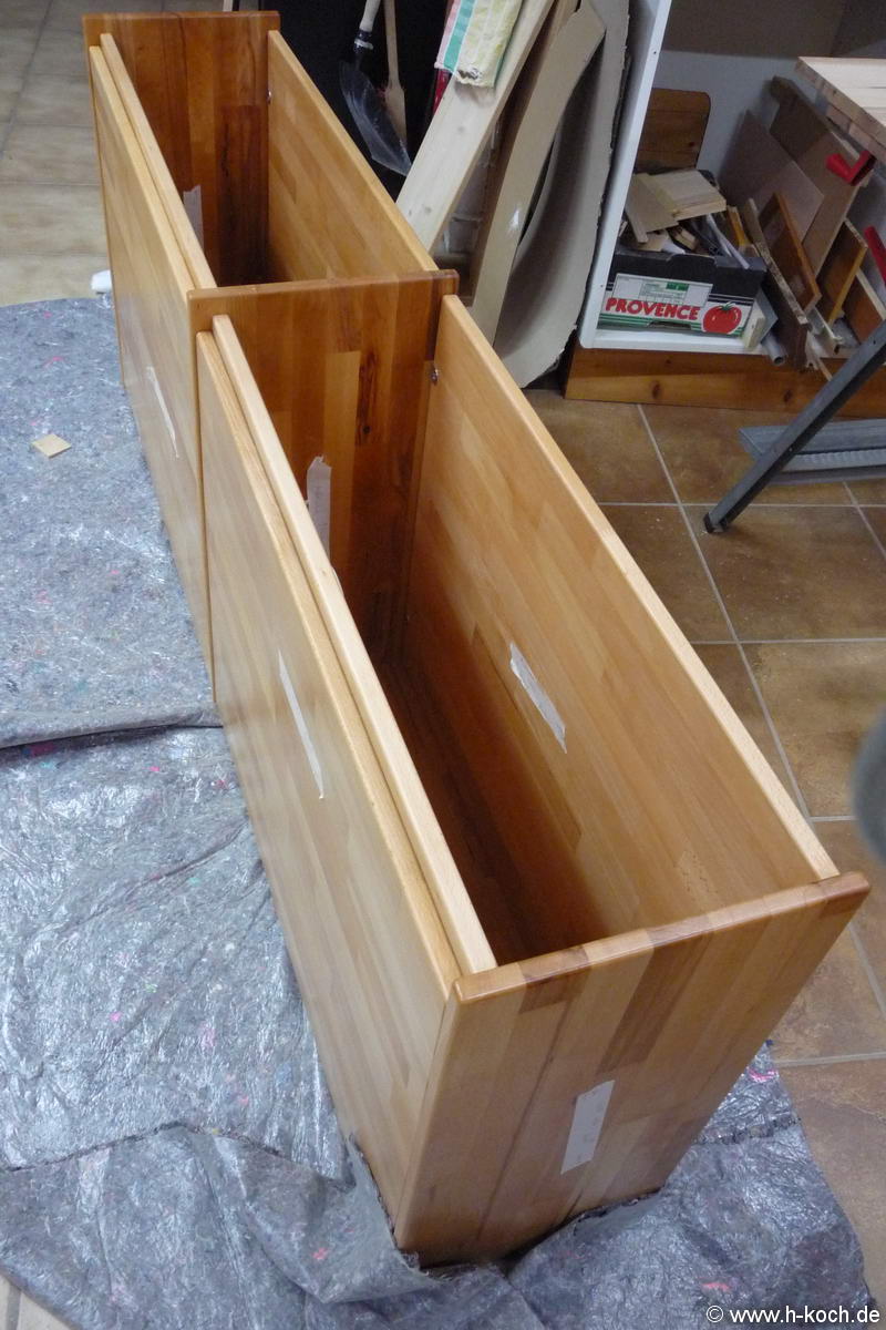 Die großen Rückseiten und Fronten konnte ich auf der Tischkreissäge nur in der Höhe stutzen.
